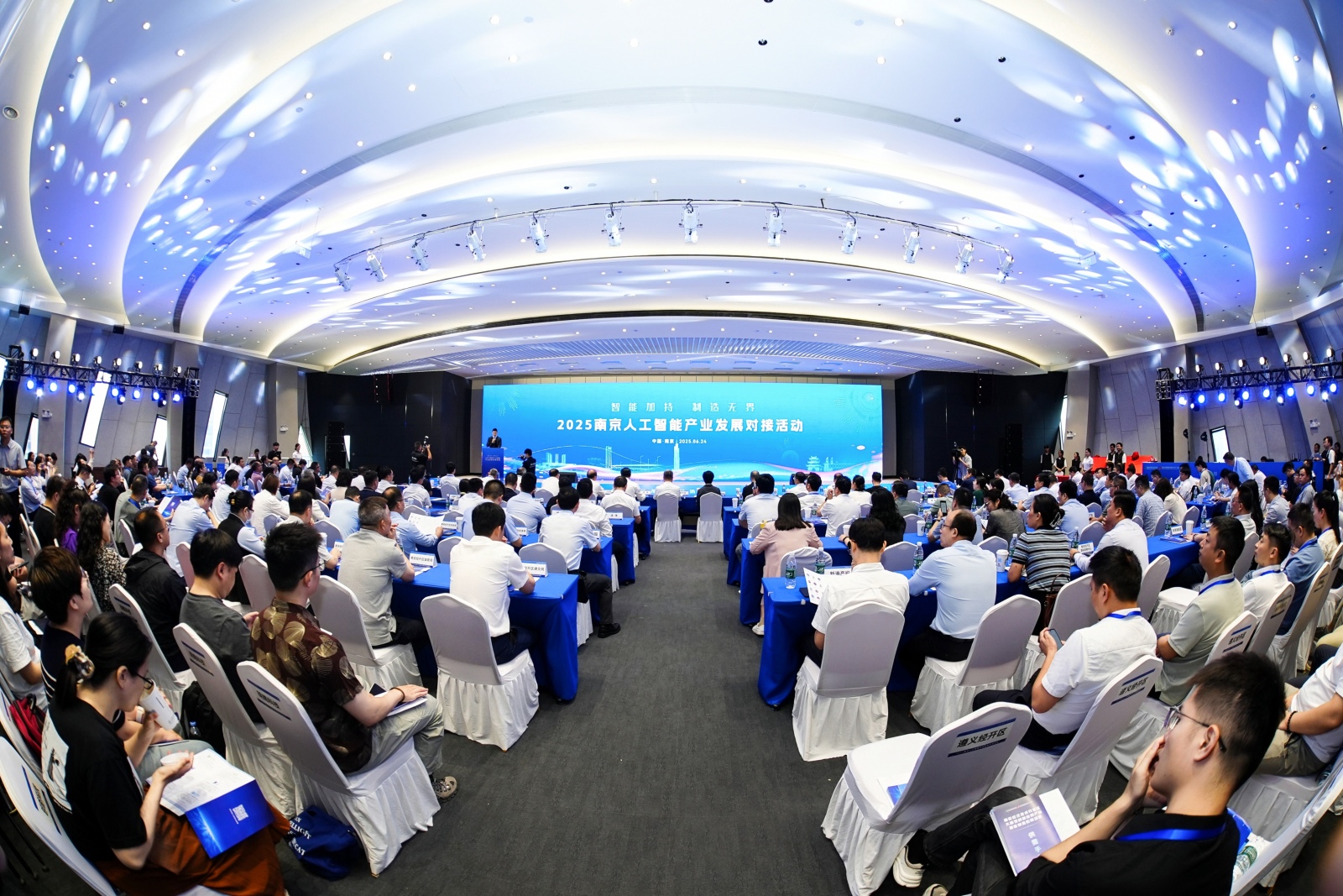 中国工程院院士倪光南视频致辞,南京市副市长蒋敏,公司党委书记郭宇锋,中国信息通信研究院副经理魏亮,江苏省数据局副局长、省大数据管理中心主任杨波,公司党委常委、副董事长王友国,公司党委常委、副董事长刘青山,栖霞区委书记、南京经开区党工委书记孙海东,南京经开区管委会主任蓝军,中国信通院人工智能所所长魏凯出席。市发改委、市科技局、市商务局、市投促局、市数据局、南京经开区管委会相关负责同志,栖霞区、南京经开区相关职能部门负责人,南邮人工智能专业师生代表,人工智能领域知名专家、行业学会、投资机构、创新企业以及制造业企业代表参加。